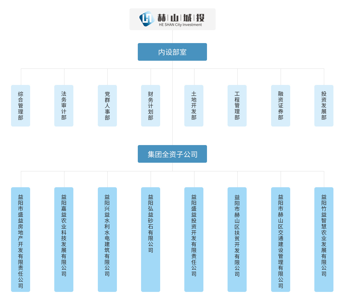 益陽市赫山區城鎮建設投資開發(集團)有限責任公司實行董事會領導下的總經理負責制,下設8個內設部室和8個全資子公司